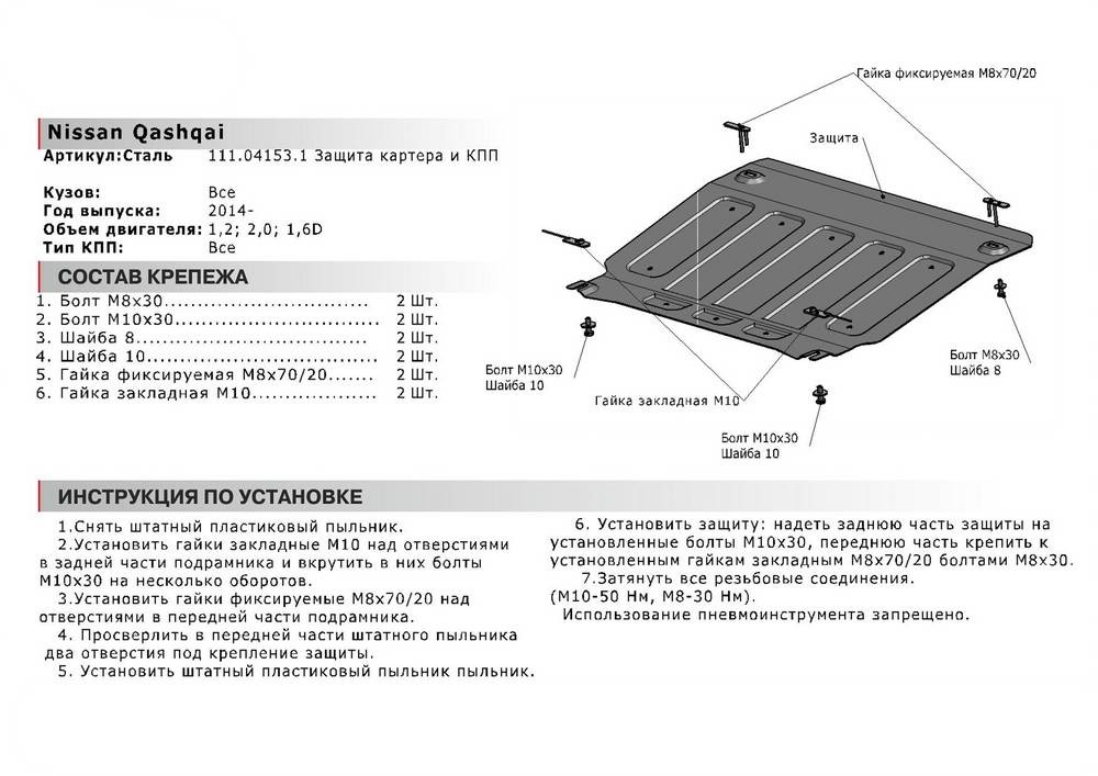 Защита картера и КПП Автоброня для Nissan Qashqai, V - 1,2; 1,6D: 2,0 ( кроме российской сборки) 2014-, Английская сборка Европа/ 111041531 Автоброня (Рф)Защита картера и КПП Автоброня для Nissan Qashqai, V - 1,2; 1,6D: 2,0 ( кроме российской сборки) 2014-, Английская сборка Европа/ 111041531 Автоброня (Рф)