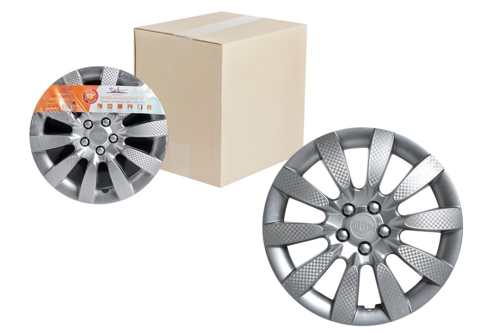 Колпаки колесные 13" "Торнадо", серебристый, карбон, компл. 2 шт.