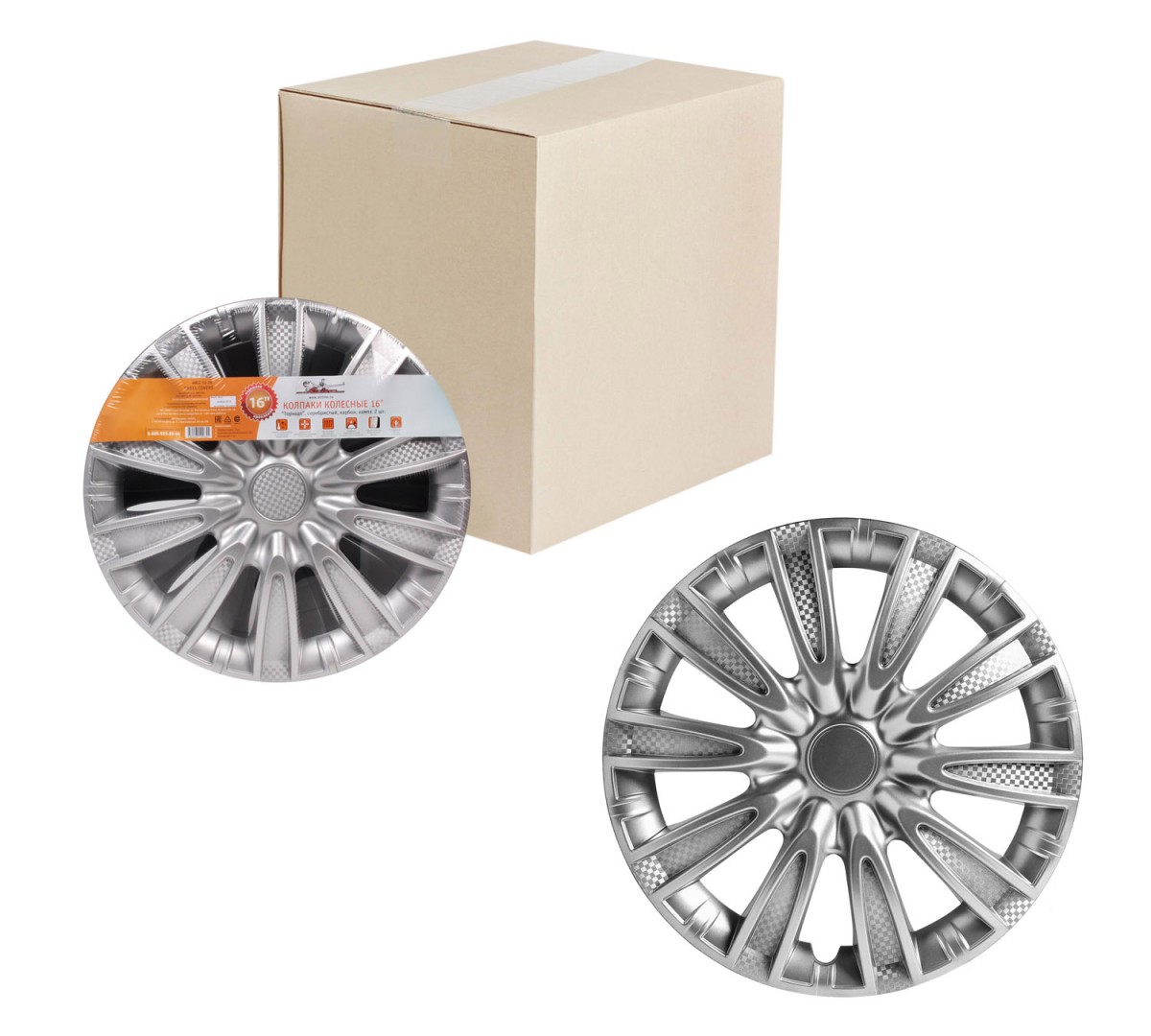 Колпаки колесные 16" "Торнадо", серебристый, карбон, компл. 2 шт.