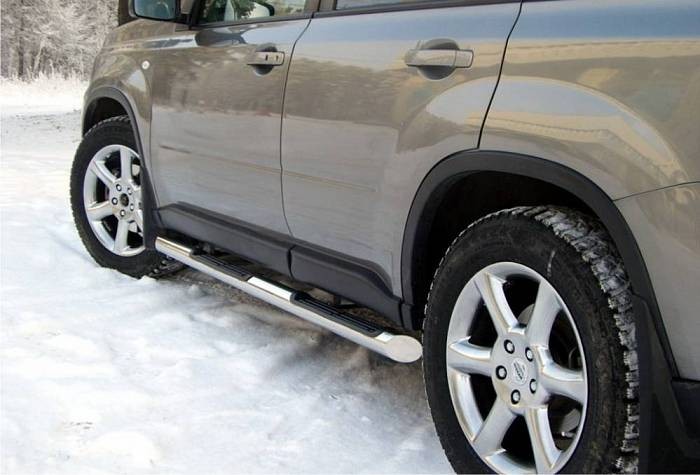 Пороги труба d76 c накладками (вариант 1) на Ниссан Х-Трейл (Nissan X-Trail 2007-2010) NXT-0000971