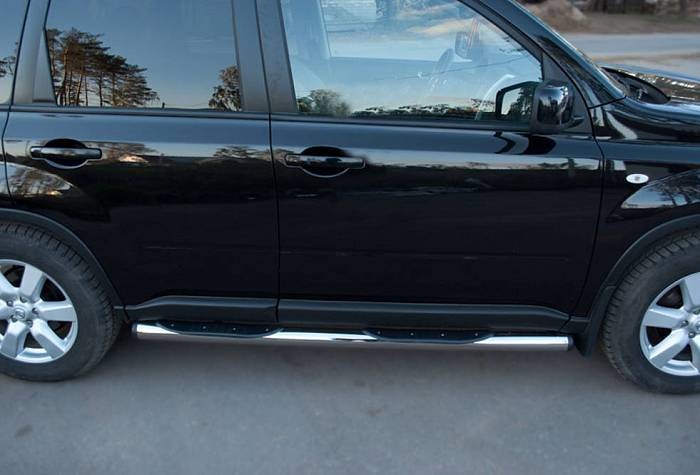 Пороги труба d76 с накладками (вариант 2) на Ниссан Икс-Трейл (Nissan X-Trail 2011-2014) NXT-0100972