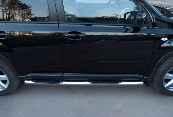 Пороги труба d76 с накладками (Вариант 3) на Ниссан Икс-Трейл (Nissan X-Trail 2011-2014) NXT-0100973