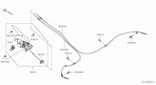 Трос стояночного тормоза правый ( ручника) на Nissan Sentra B17 ( 2014-), Tiida C13 ( 2014-) 365303DD0A/