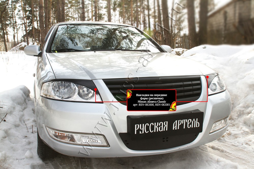 Накладки на передние фары (реснички) Ниссан Альмера Классик (Nissan Almera Classic 2007-2012)
