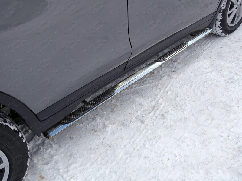 Пороги овальные с накладкой 75х42 мм на Ниссан Икс-Трейл (Nissan X-Trail 2015-)