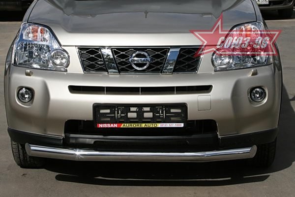 Защита переднего бампера d 76 (труба) на Ниссан Икс-Трейл (Nissan X-Trail 2007-2010)
