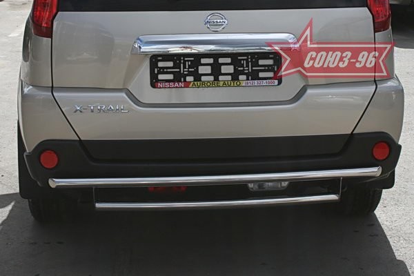 Защита заднего бампера d 42/42 двойная на Ниссан Икс-Трейл (Nissan X-Trail 2007-2010)
