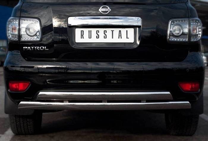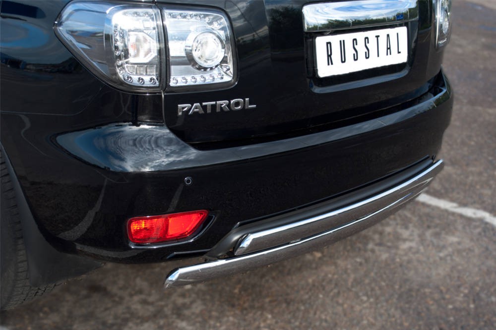 Защита заднего бампера d75/42х75/42 овалы Ниссан Патрол (Nissan Patrol 2010-2013)