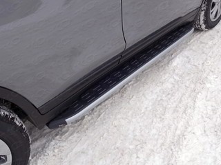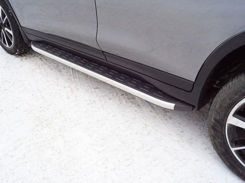 Пороги алюминиевые с пластиковой накладкой на Ниссан Икс-Трейл ( Nissan X-Trail T32 2015-)